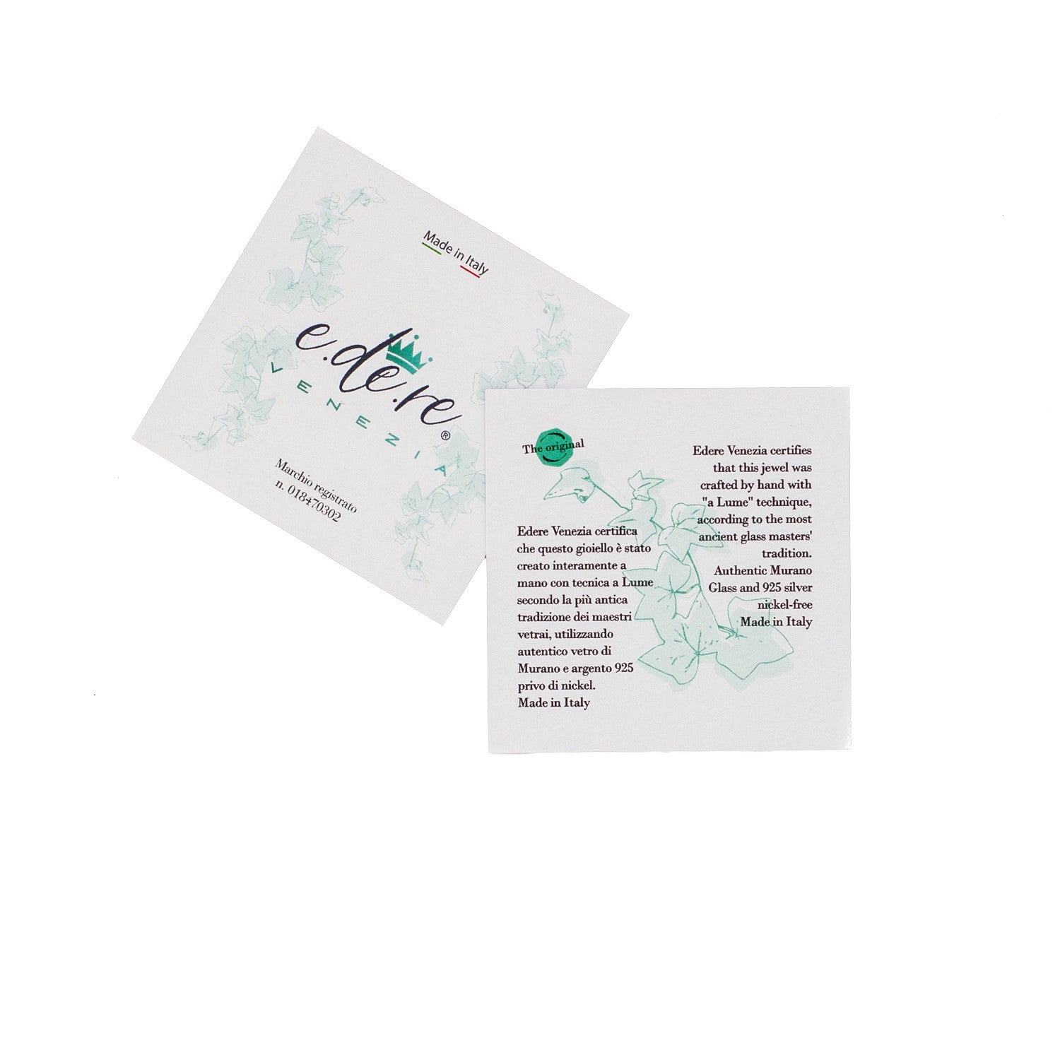 Tutti i gioielli cono accompagnati da un certificato di autenticità per il vetro di Murano e l'argento.
